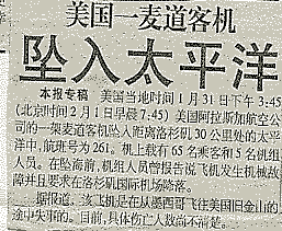 2000年2月6日美国萨克拉门托一架麦道运输机起飞后不久便坠毁引起停车场一场大火