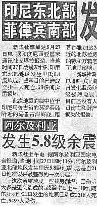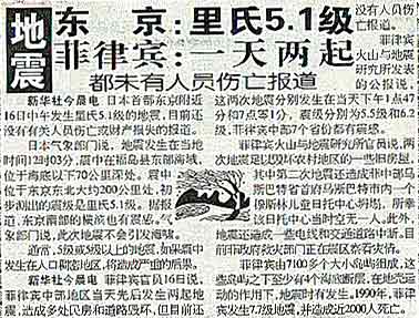 2003年6月9日台湾宜兰上午发生5.8级地震据媒体报道,这次地震波及台湾全岛。东部地区震感强烈,台北地区和台中地区有较强震感,南部地区也有感受震感。岛内未有灾情报道。目前,宜兰,花莲地区余震不断。 |
