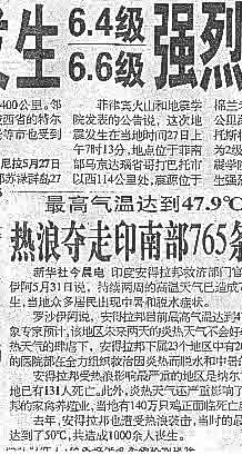| 印尼马鲁古海峡、东京北部、菲律宾南端地震;尼泊尔空难、印度南部安得拉邦高温,证明地球平“温”了一段时间后自转速度加快,才发生如此现像。地球近期即将发生结构重大调整,即许多地区发生地震。中国的非典由此可谓结束了。地震震的越大越多非典即去得越快。 |