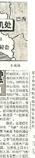 | 97年巴西小飞机坠毁拉法耶蒂顾问城。97年7月13日巴西运送金条飞机坠毁巴伊亚州秘鲁动态与巴西动态是相互关联该时期巴西洪水泛滥极其严重持续时间长 | ||