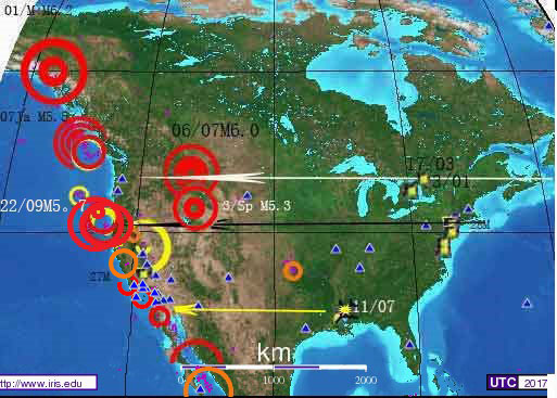 关注:远在西部同纬度地区海岸线地震和洛杉矶地震。近日华盛顿已经第二次空难。 |