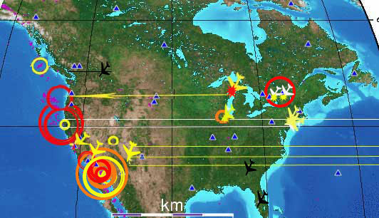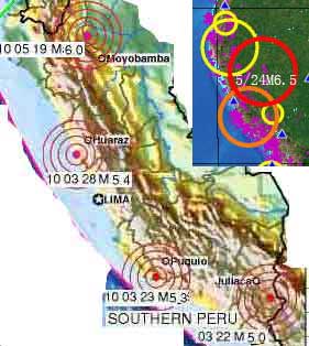 2010年初世界将发生的地震(去年尚未完成的地震,美国加州3月和6月13日,7月10日前后将M6.0以上地震, 另外 意大利中部和北部\南部、英吉利海峡、墨西哥城、牙买加、新西兰北部.智利圣地亚哥,秘鲁南北,高加索伊朗北部 |