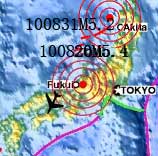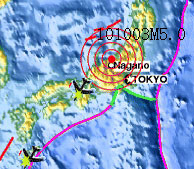 | 100103 | 日本5-6日地震东京M5.5级.关注日前所预报的九州长崎 |