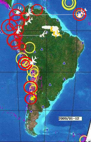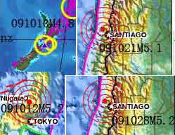 近日俄罗斯堪察加半岛,新西兰本岛南、北与智利圣地亚哥M5-6级地震甚至更大。 |