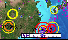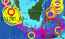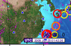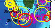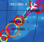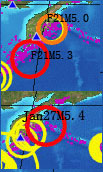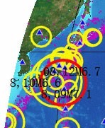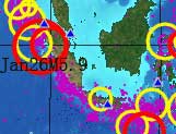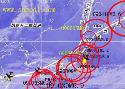 元月6日--7日日本地震(日前所预报的北海道和东京M6.2级地震)虽说是发生了,但震级未达,这次会有结局)另外,九州与东京之间. |