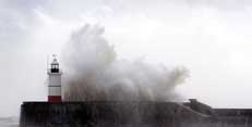 这张图片拍摄自英国苏塞克斯的纽黑文海边。从照片中我们可以看到暴风雨卷起的巨浪远高于耸立在海边的灯塔。 |