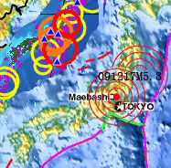 日本20日前后M6.0级地震,东京及西部\北部(前次预测的地震来迟,因此震级会更大些.与上海直升机坠毁也有关联.上海也将地震但震级不大.另外,台湾也将发生此类动态,包括菲律宾近日空难和将发生地震都有关联 |