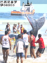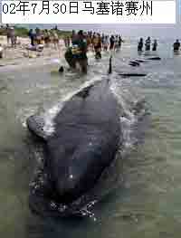 2002年7月30日,美国马萨诸萨州海滩50头巨鲸搁浅。 |