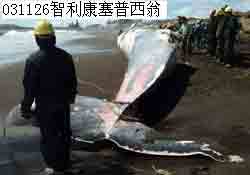 | 新西兰03年1月9日159头鲸在偏远岛屿海滩搁浅,(距南岛以南30公里)39头得救。,领航鲸外观似豚,大可达5米重达5吨,40年来该斯图尔特岛屿仅海拔2米有过4次。98年月320头。2000年12月65头搁浅毛利人海滩。2003年1月15日澳大利亚西部距珀斯200公里的巴瑟尔顿镇,6头剑喙鲸搁浅。 03年8月21日新西兰南岛发生7级以上地震 | 03年11月26日智利圣地亚哥南部康塞普西翁海滩巨鲸搁浅。与新西兰鲸搁浅地相关联.由于新西兰南部地震导致该地区多次地震见下图